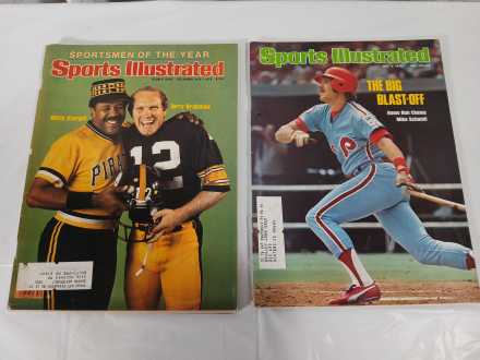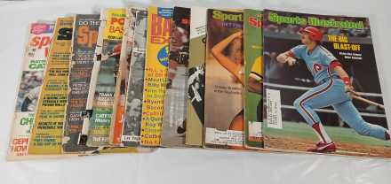 1976 Phillies Yearbook. 1978 Phillies Souvenir Program. (2) 1977 Phillies Yearbook/Scorecard (one has a name on cover). 1977 Phillies Yearbook/Scorecard, missing cover. 1978 Phillies Yearbook, bottom of cover is cut off, has a signature. 1975 Philadelphia Veterans Stadium Junior Baseball Federation. (2) Philadelphia Inquirer inserts, including 1980 World Series win.