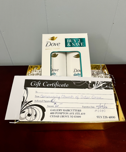 The Gallery Haircutters, located in Cedar Grove, has generously donated a $60.00 gift certificate to be used towards a haircare service in their salon. Also included is a Dove Shampoo and Conditioner set. Perfect to keep your hair healthy all winter long!