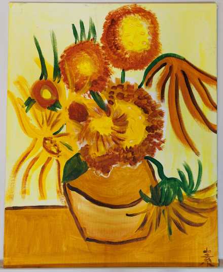 From the artist: Created in an Art Therapy workshop setting called Learning from the Masters, we were inspired by Van Gogh’s life and art, living through mental illness and channeling his profound struggles into creative expression. This collection of artworks delves into the intersection of beauty and pain, showcasing how creativity can serve as a powerful outlet for processing emotions, finding solace, and connecting with the self. Participants explored Van Gogh’s techniques, such as his bold brushstrokes, vibrant colors, and emotive landscapes, while also engaging in reflective practices that honored their personal journeys. Each piece tells a unique story of resilience, illustrating how art can transform inner turmoil into healing and hope. Through this exhibition, we invite you to witness not only the artistic inspiration drawn from Van Gogh but also the courage and vulnerability of those who dared to express their truths through the canvas.