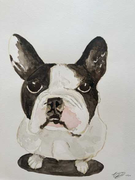 A3 watercolour portrait based on your favourite photo of your beloved pet. Completed by end of June 2025. (sample image shown)