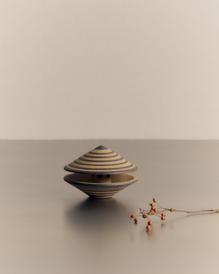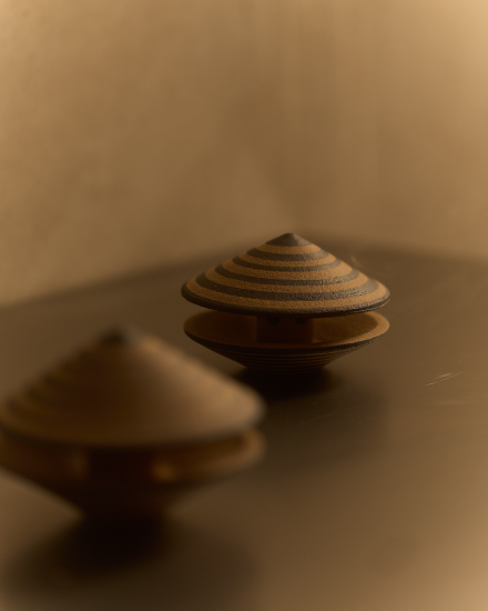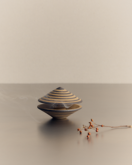 A sculptural incense burner designed to bring together character and functionality. Comprising two separate conical forms reminiscent of the Dancer range, the burner holds a single incense cone in the central column allowing smoke to make its way through the form gently escaping outwards through the centre.