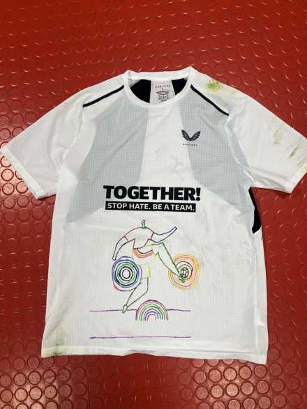 Das Shirt (Größe L) wurde beim Aufwärmen von Avdo Spahic getragen.