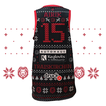 Dieses originale Christmas Jersey der druck.at Traiskirchen Lions wird bei den beiden Weihnachtsspielen am 26.12. und 28.12. getragen.