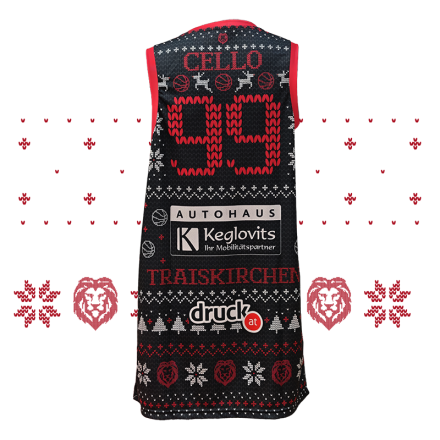Dieses originale Christmas Jersey der druck.at Traiskirchen Lions wird bei den beiden Weihnachtsspielen am 26.12. und 28.12. getragen.