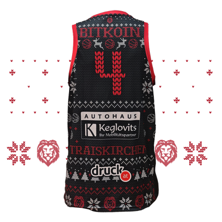 Dieses originale Christmas Jersey der druck.at Traiskirchen Lions wird bei den beiden Weihnachtsspielen am 26.12. und 28.12. getragen.