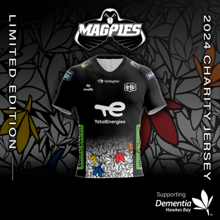 Score yourself a piece of HB ruby history with this custom Magpie’s jersey. Designed in collaboration between Dementia Hawkes Bay and the Magpie’s exclusively for their charity game V Taranaki on 20th September at McLean Park, Napier. This jersey isn’t regular fan wear – it was worn by the players on game day enduring the rigours of a hard fought rugby battle.