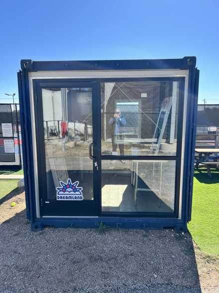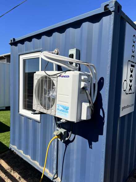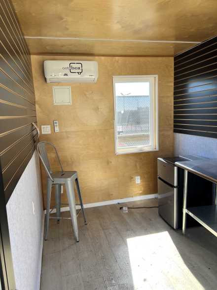 Air conditioned, insulated, converted storage container. Great for office space, glamping spaces, private meeting space, etc.