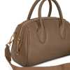 This satchel includes a zipper closure, handles to hand-carry, and an adjustable soft cross-budy strap. The outer body and lining are made from recycled materials.