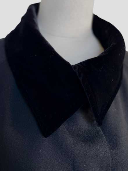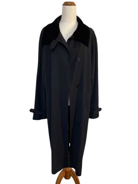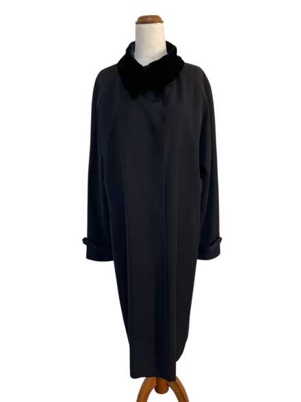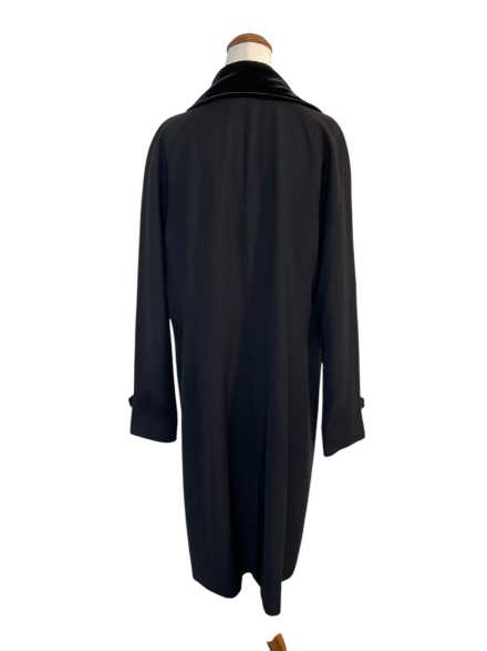Carla Zampatti Black Woollen Coat with velvet collar, full length silk lined.