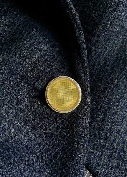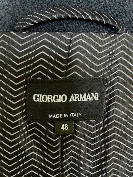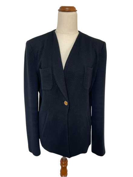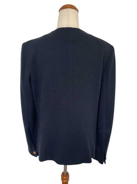 GIORGIO ARMANI Navy Blue Single Breasted Jacket (size 48) 100% wool with rayon lining. The fabric is a lovely soft quilted finish, with a classy European style and feel.