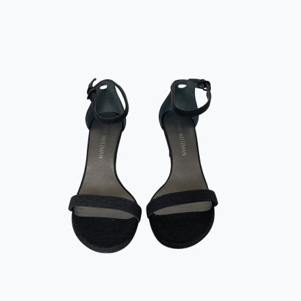 STUART WEITZMAN Nearly Nude Pewter Glass Sandal Heels (size 37)