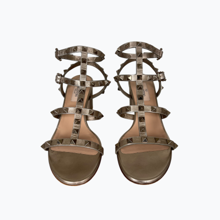 VALENTINO Gold Rockstud Sandal with Chunky Heel (size 37.5)