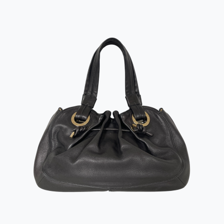 GENUINE AUTHENTICATED BVLGARI Black Leather Ruched Hobo Handbag