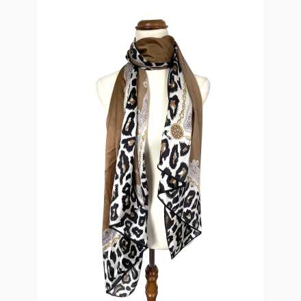 ROBERTO CAVALLI Silk Leopard Trim Scarf