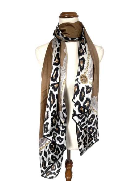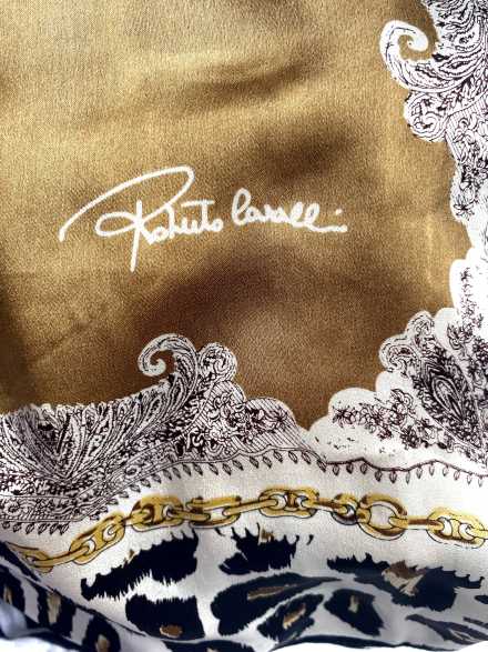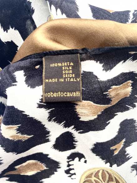 ROBERTO CAVALLI Silk Leopard Trim Scarf