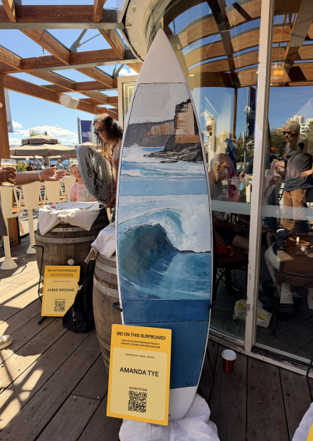 Bid on a one-of-a-kind hand-painted surfboard by acclaimed Northern Beaches artist Amanda Tye. A dreamy tribute to Manly’s coastline, auctioned in support of Lifeline.