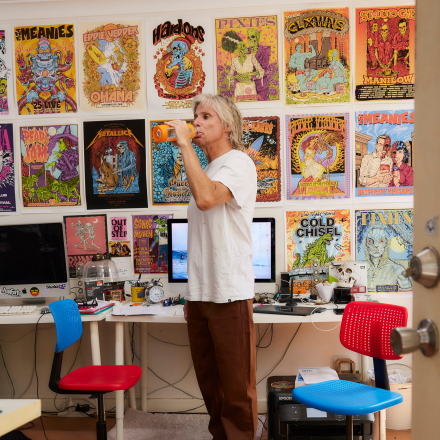 Based in Manly, Ben Brown has been shaping Australia’s visual culture for over three decades. Known for his striking graphic style born from surf, skate and punk-rock roots, his artwork captures the raw energy and humour of coastal life. From album covers to murals, Ben’s illustrations pulse with rebellious spirit and bold linework that have become synonymous with the Northern Beaches’ creative scene. Deeply connected to the surf community, his work reflects the fearless attitude that defines Manly’s shores.