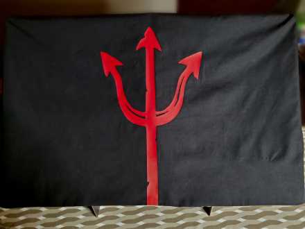 This cover is 23" x 15" x 2.5" and double sided. The plain side is made of 100% lyocell fabric with an iron on vinyl Imp design, and the patterned side is made of 100% cotton fabric. All fabric is pre-washed and shrunk, so it's safe to be either hand or machine washed should you need.