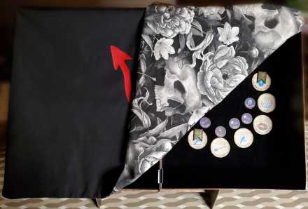 Have you been looking for a cover for your Grimoire? Look no further, your favorite tomato and murder goose have got you covered! Handmade by Navean, this Grimoire cover does not require clips!