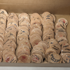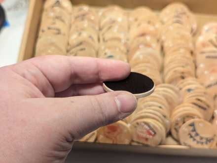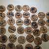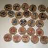 - Hand stamped and detailed wooden tokens, coated in acrylic finish and felt backed.