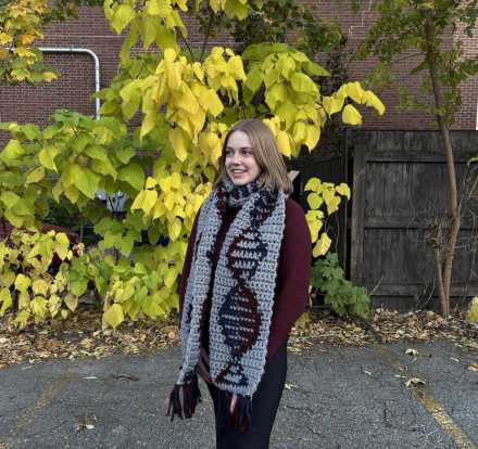 However, even after she started grad school, crocheting continued to be a wonderful support. Helping her focus in class and as a bonding activity with her cohort. As she has come to love both of these wonderful communities, Genetic Counseling and Fiber Arts, she can’t help but continue to find parallels and similarities. A female dominated space, with important ties to the disability community, a mix of science and art, and an obsession with acronyms!