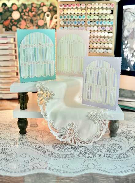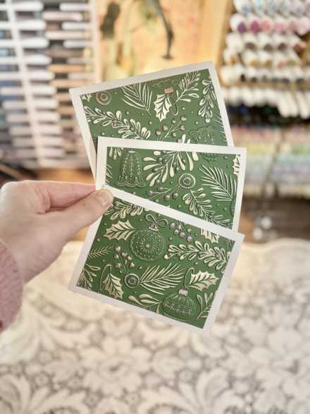 Description: Three sets of three handmade themed cards including a holiday set, a birthday set, and a spring flower set.