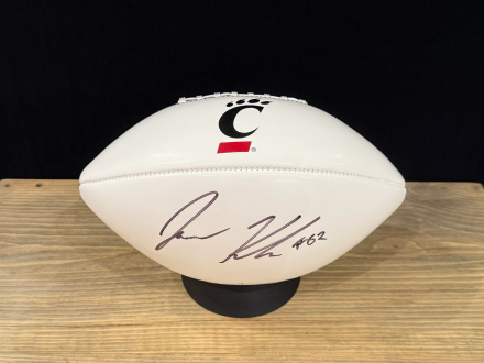Bearcats and Eagles fans, seize this chance to own a piece of Cincinnati and NFL history! This authentic football is signed by Jason Kelce, UC’s legendary #62 and Super Bowl LII champion with the Philadelphia Eagles. A proud Bearcat from 2006-2010, Kelce dominated at Nippert Stadium as a walk-on turned All-Big East center, paving the way for a storied NFL career, including seven Pro Bowl selections and a 2024 retirement as an Eagles icon. This signed football is a must-have for UC alumni, students, and fans celebrating Kelce’s journey from Clifton to Super Bowl glory. Perfect for display or gifting. Don’t miss this rare collectible honoring a Cincinnati hero!