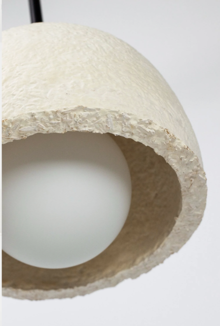 Description: The MushLume Cup Light Pendant features a 9” diameter dome perfect for eco-conscious spaces. This sustainable hanging lamp offers a nature-inspired design that creates a lasting impression. The MushLume Lighting Collection consists of pendants, sconces, and table lamps and is grown using Ecovative's MycoComposite - a combination of mycelium and regionally sourced non-food agricultural waste. After the mycelium has fully matured, the lampshades are de-molded, dried, and heated, creating a 100% biodegradable lampshade. MycoComposite is naturally flame resistant and water resistant.