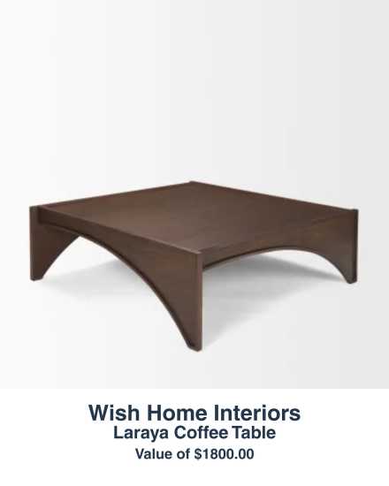 This is “The Laraya Coffee Table” generously donated by Wish Home Interiors valued at $1,800. It will be set up in the VIP Lounge on the night of the event.