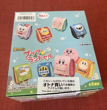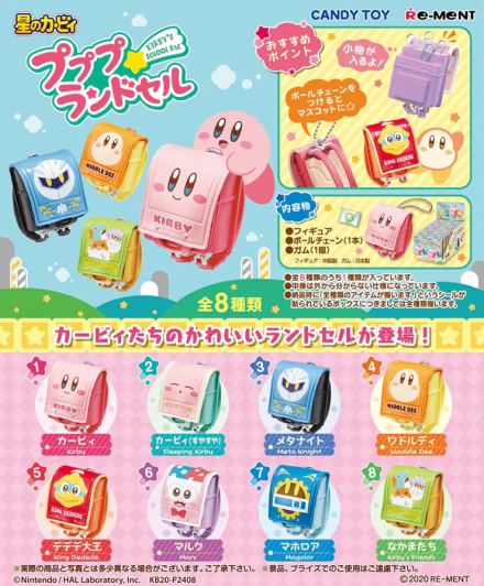 • Full set of eight pieces: Kirby, Sleeping Kirby, Meta Knight, Waddle Dee, King Dedede, Marx, Magolor, Kirby's Friends with functional backpack closure.