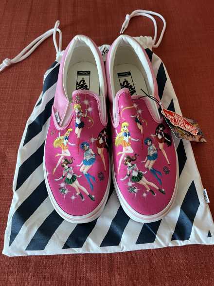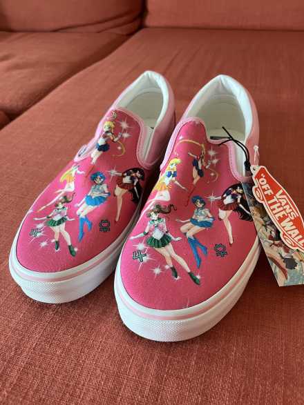 Back in 2022, Vans had a pretty cool Sailor Moon collab. It seemed like a no brainer to build a custom two-tone pink Sailor Moon slip-on. As a Converse girl, I ordered the same size, and uh... turns out Vans runs a little large!