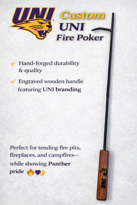 Show your Panther pride while enjoying cozy nights by the fire with this UNI-branded fire poker. Hand-crafted with durability and style in mind, this tool is perfect for tending a fire pit, fireplace, or campfire—while repping the University of Northern Iowa.