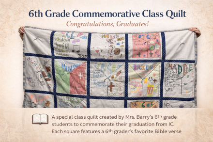 This quilt is more than a blanket; it’s a heartfelt snapshot of a graduating class and a beautiful reminder of their faith-filled journey at IC.