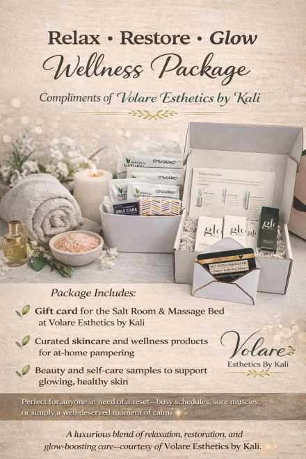 Relax • Restore • Glow Wellness Package Compliments of Volare Esthetics by Kali
