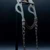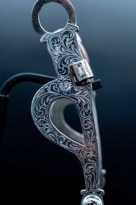 This Diablo Silver Bridle Bit is one of the most historically significant and visually striking pieces in the Patti Elliot collection. Built from Monel steel with ornate silver overlay, this bit showcases the dramatic, flowing cheek design characteristic of classic Diablo craftsmanship. The open-heart cutouts, deep floral engraving, and balanced proportions give it an unmistakable silhouette that collectors immediately recognize.