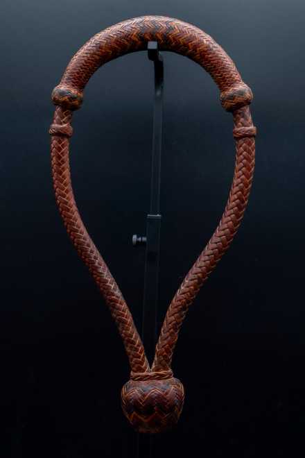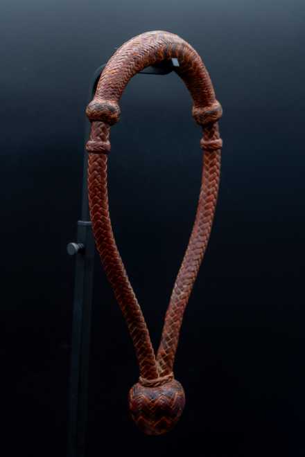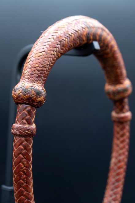 This Gail Hought bosal is a beautifully crafted example from one of the most respected contemporary braiders in the hackamore tradition. Known for her precision, balance, and exceptional material quality, Hought’s pieces are sought after by both collectors and serious horsemen. This bosal reflects her signature style: tight, even, finely executed braidwork and a smooth, responsive feel in hand.