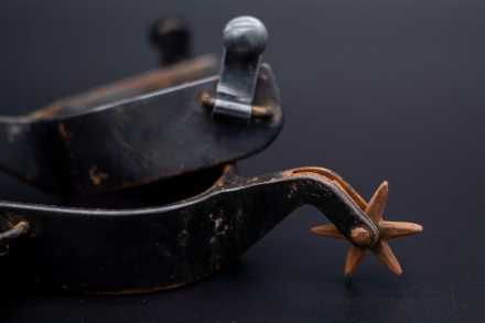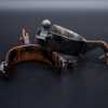 These stout, dark-finished steel spurs feature the classic Klapper-style shank, known for its clean sweep, balanced weight, and no-nonsense function. They carry dart-style rowels that are sharply pointed and rotate cleanly, making them a more assertive working spur designed for riders who need precision response.