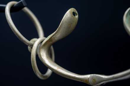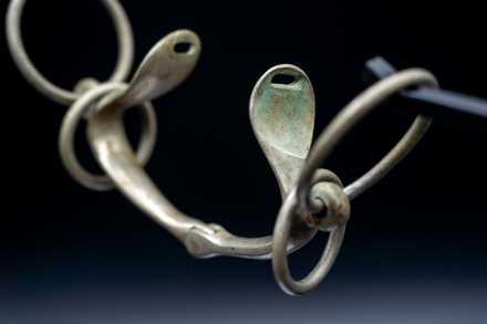 This vintage Springsteen-style snaffle is a classic example of the training bits widely used on jumping and fox-hunting horses through the mid-20th century. Many hunters and jumpers “went around” in this style of snaffle, and Al has used this one specifically to soften the jaw and mouth while keeping the communication light. It offers clarity without severity, making it a practical and historically meaningful training tool.