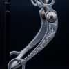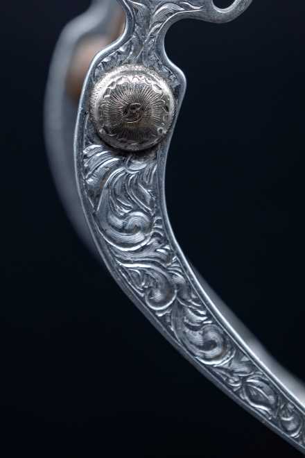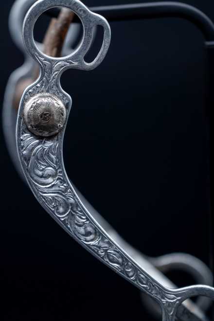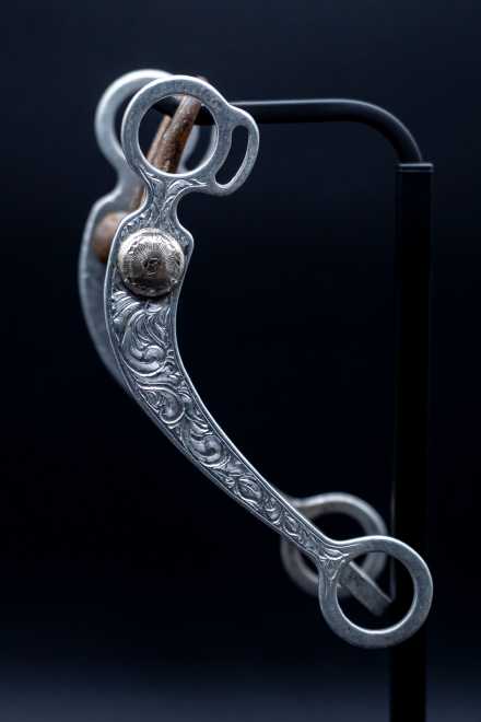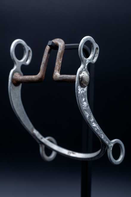 With an 8.5-inch swept shank, a narrow 3-inch port, and a 5.25-inch mouthpiece, this bit offers clear leverage, elevated tongue relief, and a refined feel that allows a sensitive cutting horse to stay light and correct. It is an excellent example of a trainer-used tool rather than a decorative showpiece, valued for its authenticity and its connection to real performance-horse history.