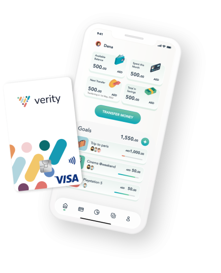 Verity is the family banking app and prepaid card for kids and teens, powered by parents. Verity app provides children age 8-18 with their digital wallet accounts & Visa debit cards for free. They can receive their allowances digitally, create savings goals & earn from chores.