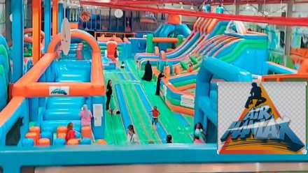 About Air Maniax -the first ever indoor inflatable park on a large scale (fresh for kids nostalgic for adults), warrior assault interactive (ninja warrior course with a points-based system), zip zag (imagine a zipline and quadruple the dose of adrenaline) and laser frenzy (think mission impossible laser heist scene).