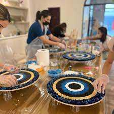 Apart from our practice, we also hold creative art workshops in Dubai, for Resin art, Fluid art, and Alcohol inks. For these workshops, we have collaborated with the federal youth authority in Dubai, Emirates youth and Autism Centre, and many cafes in Dubai.
