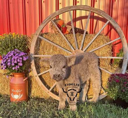 Terms: 1/2 down to hold. Balance due before pickup. Located at Fidelis Miniature Cattle Company.