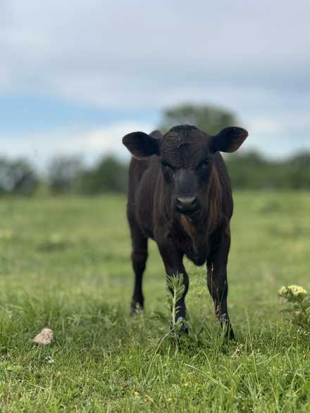 Say hello to Stella—a small-framed black Dexter heifer with the kind of size and structure ideal for homesteaders and mini cattle breeders alike. Sired by Cowskin Creek Bruce, a 38” chondro-positive Dexter bull known for throwing compact, easy-to-handle calves, and out of a 40” dam, Stella is bred to stay small and efficient.