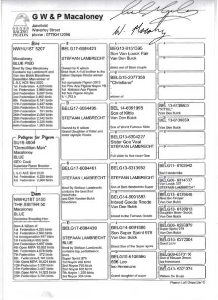 To find the ultimate handing, racing and breeding machine in one pigeon is as rare as they come.