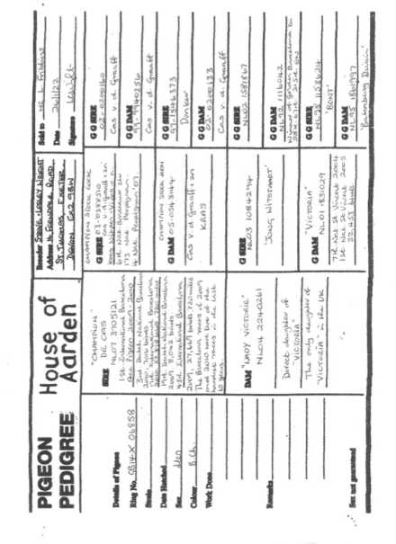 Her Grand parents being Champion De Cas 1st International Barcelona ACE Pigeon, Champion Blue Badge, Champion Ceessie,