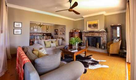 Rhino House is a comfortable, spacious original farmstead with a wide verandah opening onto expansive views of the surrounding hills.