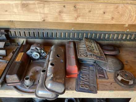 Chevy big block and small block valve covers. 1962 small block valve covers. License plates, hub caps, etc.