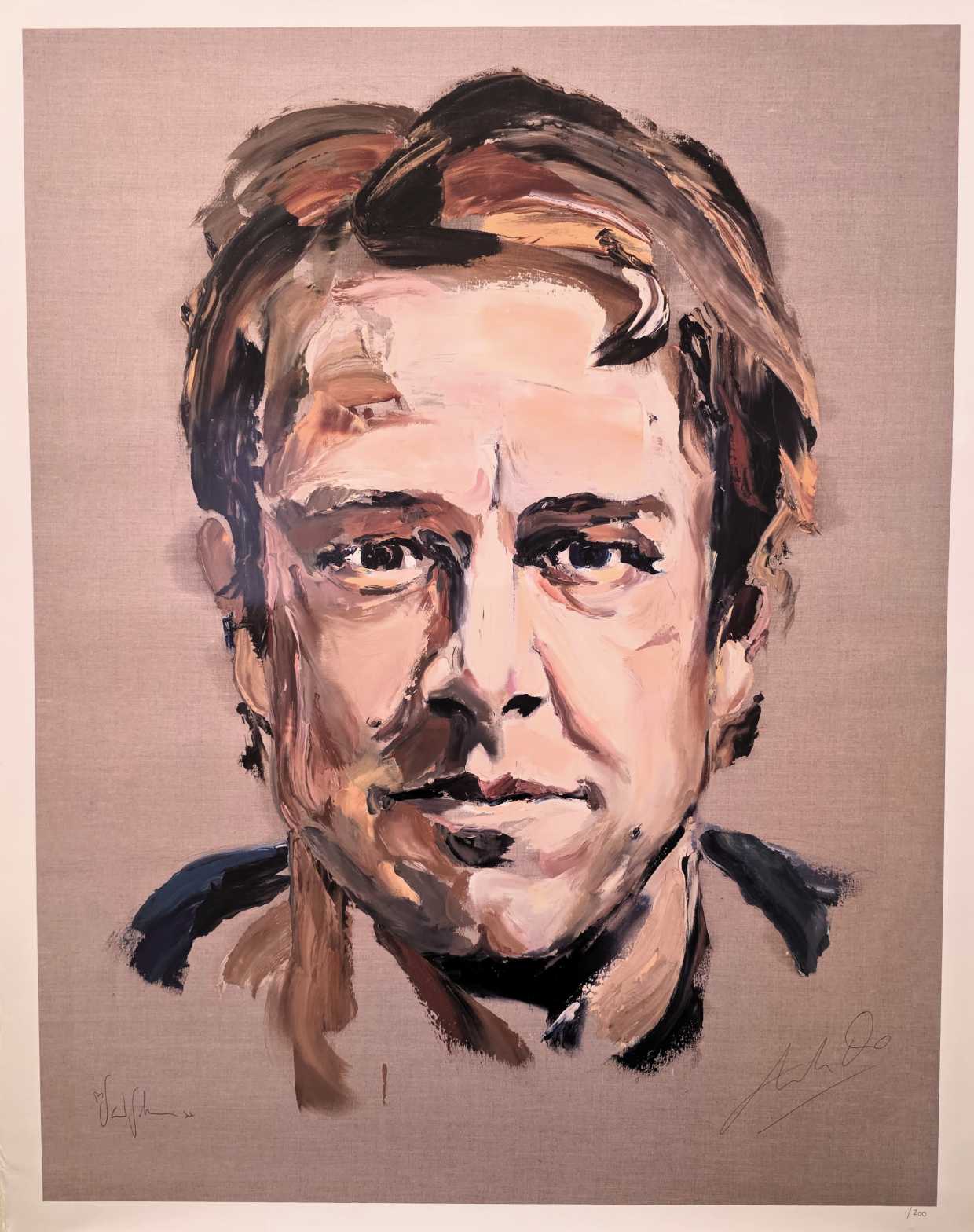 Signed by both artist and subject, this work carries added rarity and significance—bridging contemporary Australian portraiture with a powerful personal and philanthropic story.