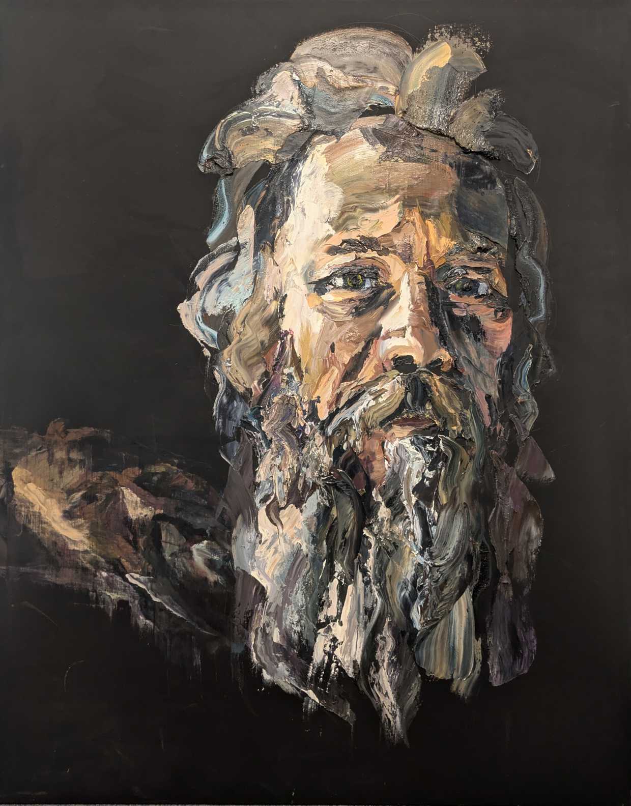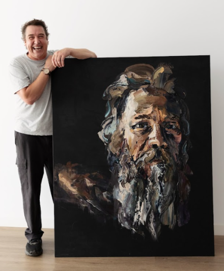 A solitary figure emerges from a subdued ground, rendered with emotional weight and psychological intensity rather than strict likeness — a defining characteristic of Anh Do’s most collectable works. The restrained winter palette of cool greys, muted blues and earthy tones heightens the sense of introspection, while the physicality of the paint surface gives the work a sculptural presence at scale.